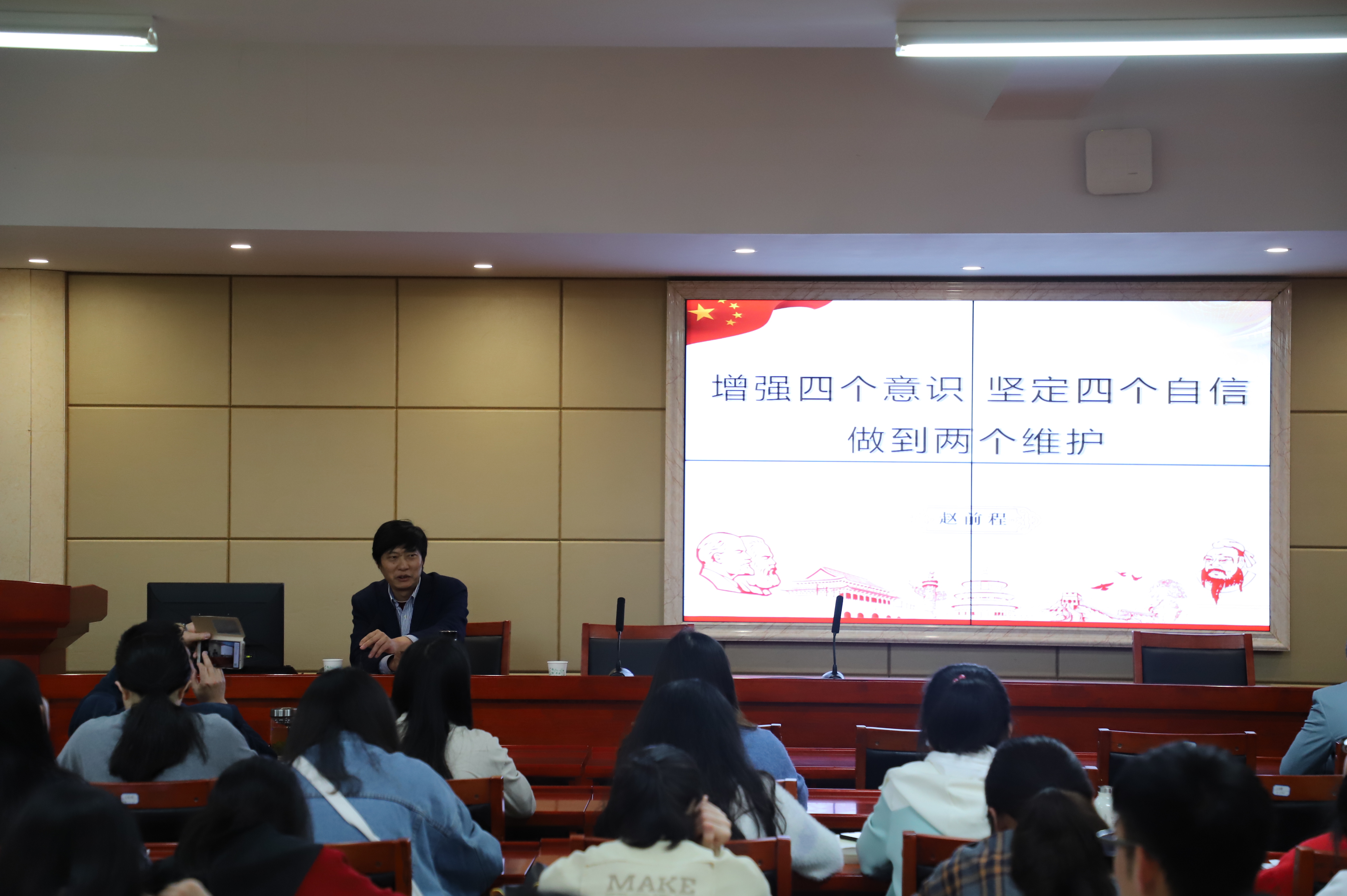 应世俱杯(Club WC)官方网站_世俱杯登录入口注册党委邀请,校党委委员、统战部长赵前程教授于4月16日下午在立言楼4-1报告厅为我院教工第五支部的党员老师和学生入党积极分子讲了一堂主题为“增强四个意识、坚定四个自信、做到两个维护”的精彩党课。
