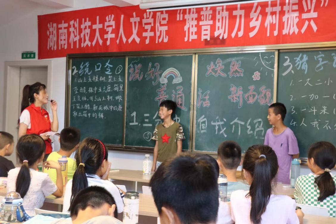 7月9日上午,株洲攸县石羊塘镇儿童之家传来了一阵又一阵的鼓掌声,四年级孩子们的欢笑声此起彼伏地传来。走进教室一看,是志愿者龙杨慧在教孩子们读绕口令。“发扬国风,从说中国话起;说中国话,从普通话开始。”为了圆满完成推普助力乡村振兴的志愿服务目标,在乡村大力推广普通话,传承优秀传统文化,为此世俱杯(Club WC)官方网站_世俱杯登录入口注册世俱杯(Club WC)官方网站_世俱杯登录入口注册“三下乡”实践团队在暑期学校展开三下乡特别课堂第三期:说好普通话,焕然新面貌。