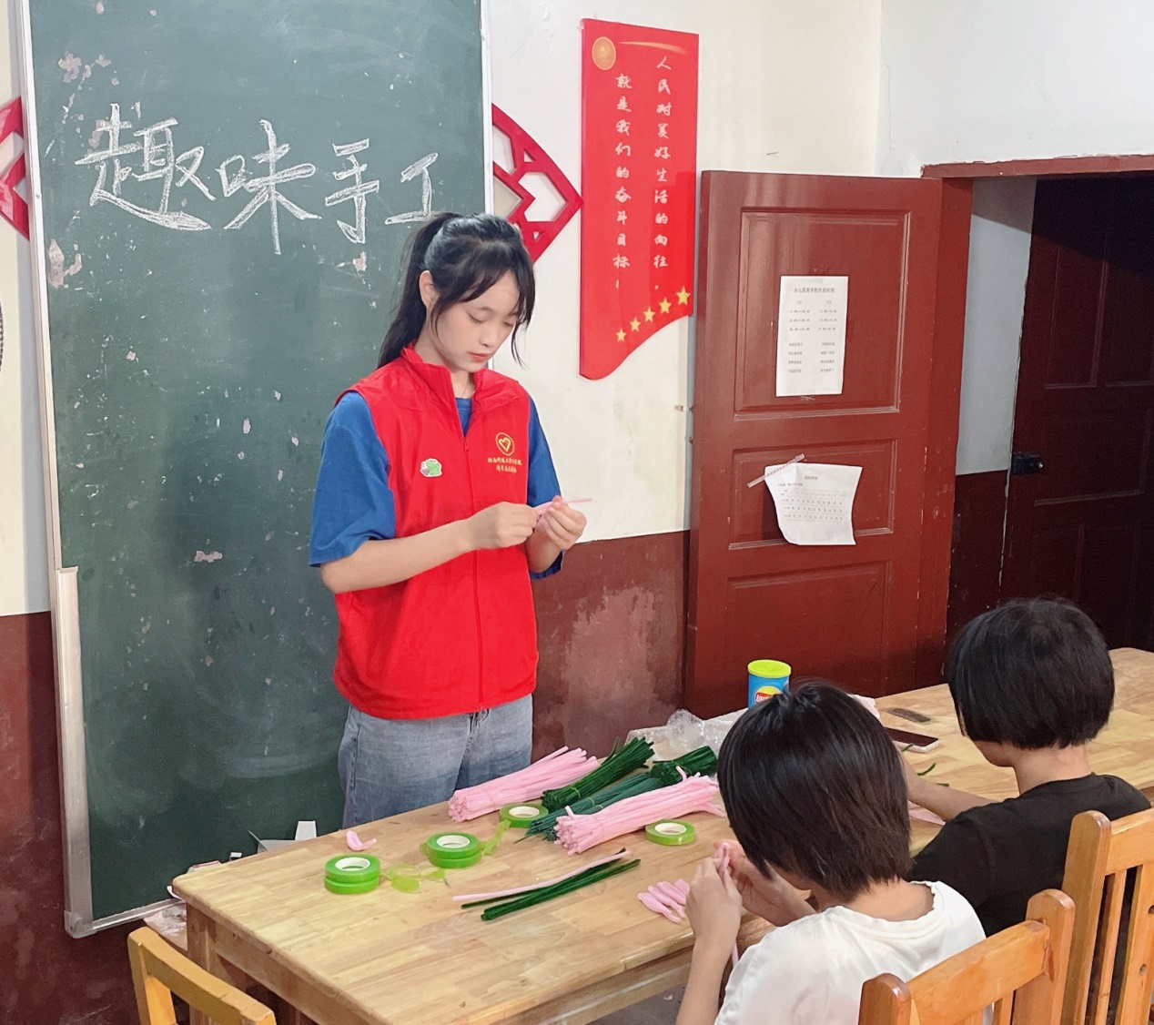 为丰富青少年儿童课堂生活,将“七彩课堂”四字落到实处,7月15日上午,世俱杯(Club WC)官方网站_世俱杯登录入口注册世俱杯(Club WC)官方网站_世俱杯登录入口注册暑期“三下乡”实践团队于株洲市攸县石羊塘镇谭家垅村“红色讲堂”内开展趣味手工活动。