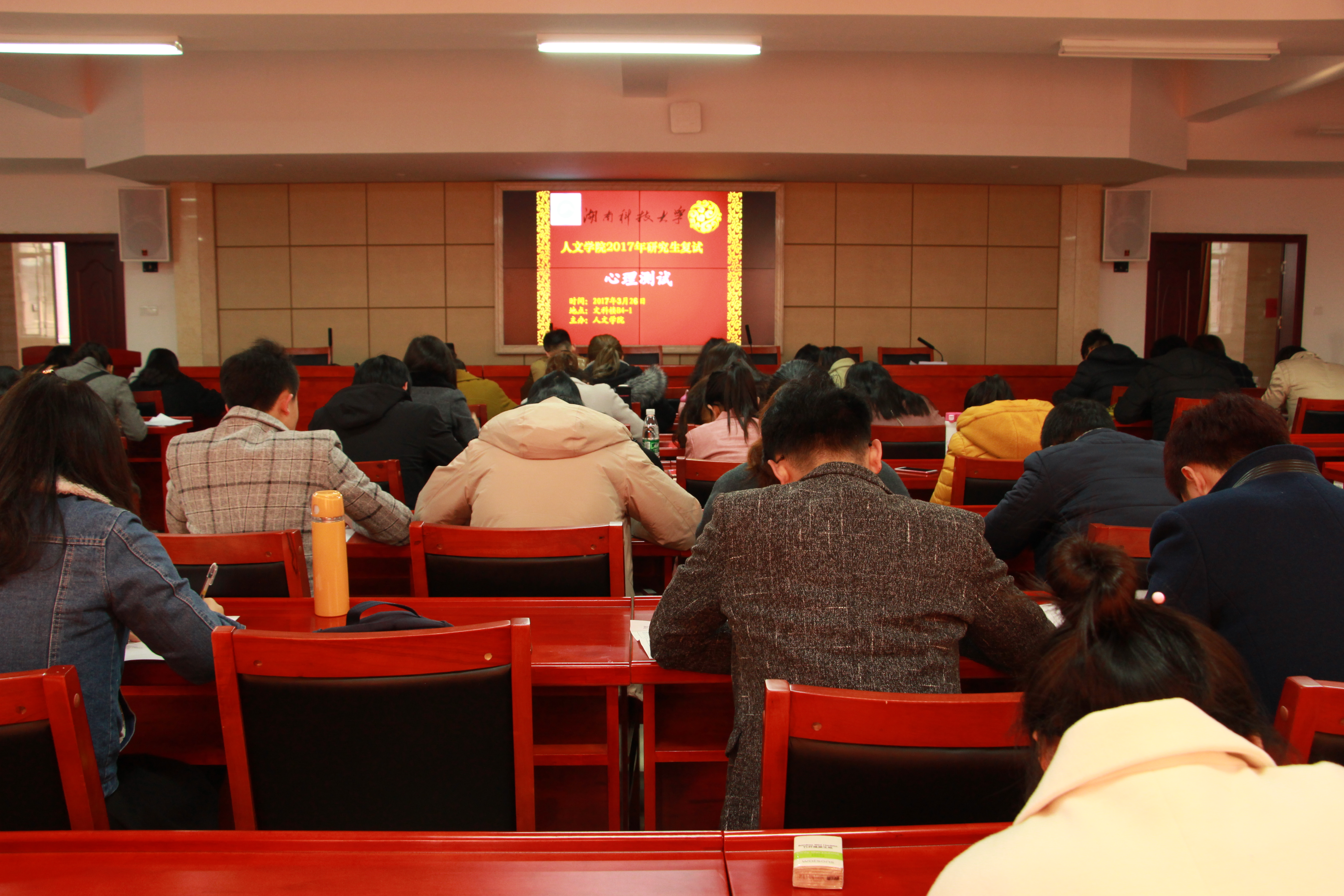 325日,考生均已完成研究生院的报到。26日上午,我院于文科楼B-4-1统一进行四个专业的心理测试考试及分专业集体笔试,下午在不同考场召开不同专业的综合面试,26日晚则为各专业安排加试。