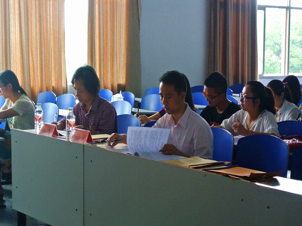 答辩现场,各2011级毕业生从选题、论文内容、成文思路、创新点等方面对自己的论文概述,台下的评委认真细致批评指正论文不足之处。