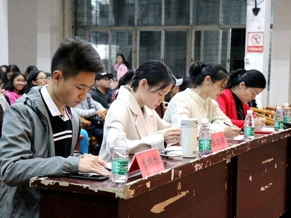 10月20日晚7时,由世俱杯(Club WC)官方网站_世俱杯登录入口注册团委学生会主办,语言艺术团承办的“青春献党· 艺染湖科—世俱杯(Club WC)官方网站_世俱杯登录入口注册2017级新生演讲决赛”拉开帷幕。来自不同专业的十二名选手在初赛选拔中脱颖而出,顺利进军决赛,并于我校南校学生活动中心展开巅峰对决。我院学工办主任马忠石老师、学工办赵华老师、学工办成伟明老师、学工办赵晗冰老师、学工办钱子凡老师、学生会主席团成员、各部门部长及学工助理到场聆听,并担任评委。此外,本次比赛还特邀原校广播电视台播音部部长陈方琳、15级新生演讲赛冠军得主李柳杨担任评委,部分2017级新生也到场见证了此次激烈对决。