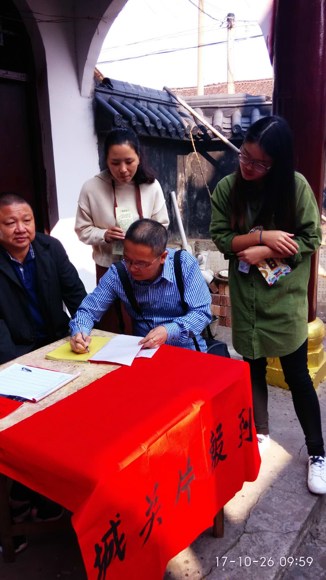 26日上午,考察团驱车抵达第一站:永兴县西河口村,实地考察了当地的苏圣庙及屏贵戏台。随后,一行人驱车前往三侯祠,实地考察湖南省非物质文化遗产——永兴县三侯祠重阳庙会。考察团对三侯祠的历史文化、戏台的经营管理、庙会的开展情况等各方面进行深入了解,收集整理出一批重要的一手资料。在永兴籍“老乡”李跃忠老师的热情邀请下,考察团全体成员在三侯祠重阳庙会亲身体验了一回流水席。