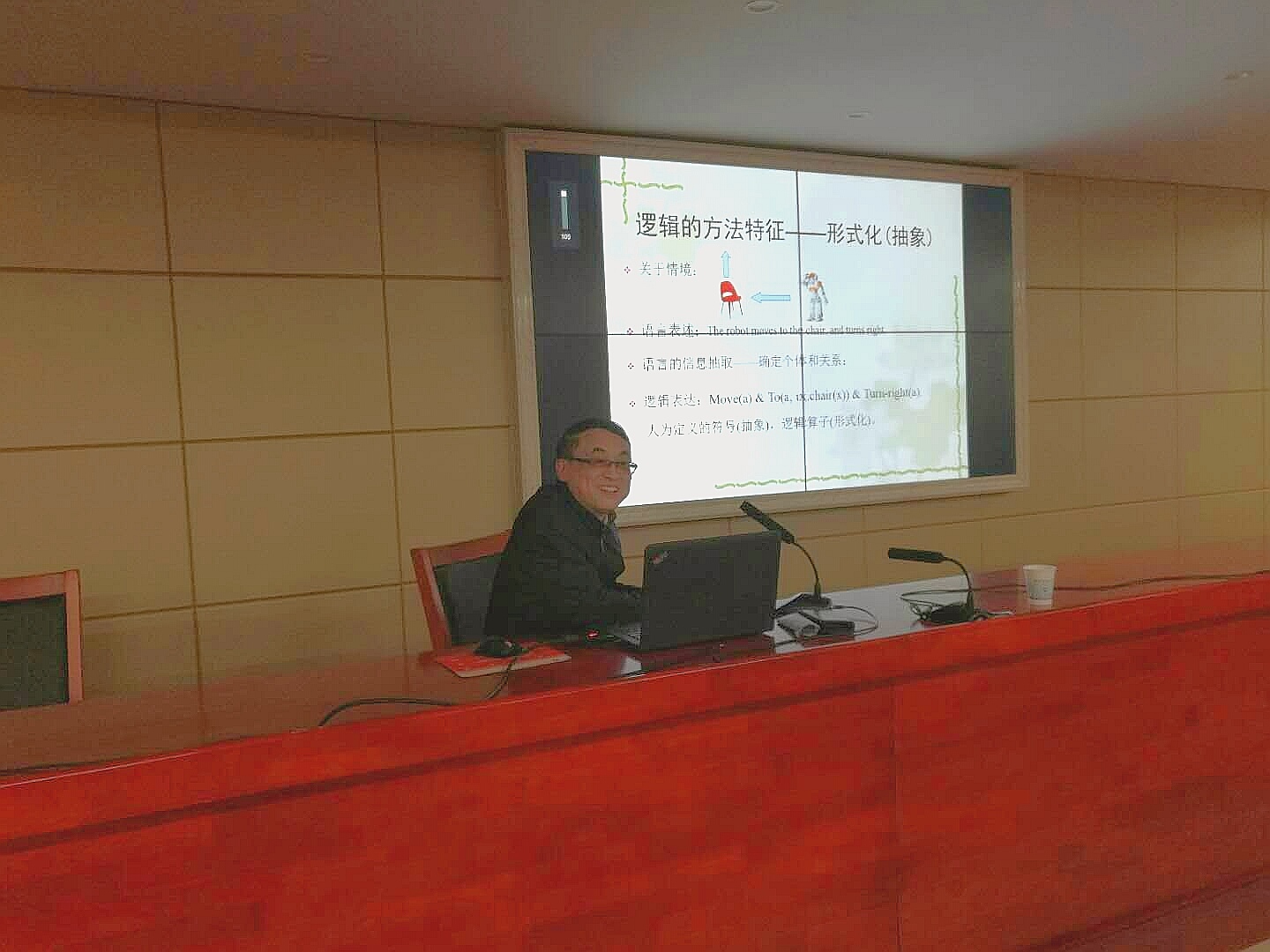 讲座围绕“逻辑学的基础性质和方法特征”,“语言、语言研究和语境”,“逻辑关联语境研究自然语言以及组合范畴语法CCG”,“逻辑关联语境研究人工语言计算机程序语言XYZ/E”四个方面开展。邹教授主要从情境、语言表述、信息抽取以及逻辑表达四方面来阐述有关逻辑的方法特征,随后他又阐述了自然语言和人工语言的定义,介绍了语言研究的三个层面:句法、语义和语用。