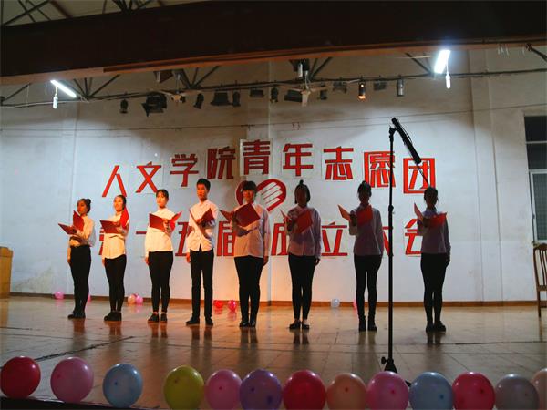 晚会伊始,一场活力四射的开场舞瞬间点燃全场,主持人宣布成立大会正式开始。校志愿团代表周靖宇上台致辞:“志愿活动对大学生具有积极重大的意义,它可以丰富大学生的社会经验,提高大学生道德水平,使学生们学习到新的知识技能。”随后,由学生们准备好的各类节目开始轮番登台演绎,空灵优美的独唱,幽默逗趣的双簧表演、活力轻快的B-BOX表演,柔美古典的舞蹈,吉他与民谣的混搭的完美碰撞......引得场下观众接连叫好,掌声如潮。其中,由语言艺术团带来的《青年志愿者—时代之光》朗诵慷慨激昂,对青年志愿者精神进行了深刻诠释。