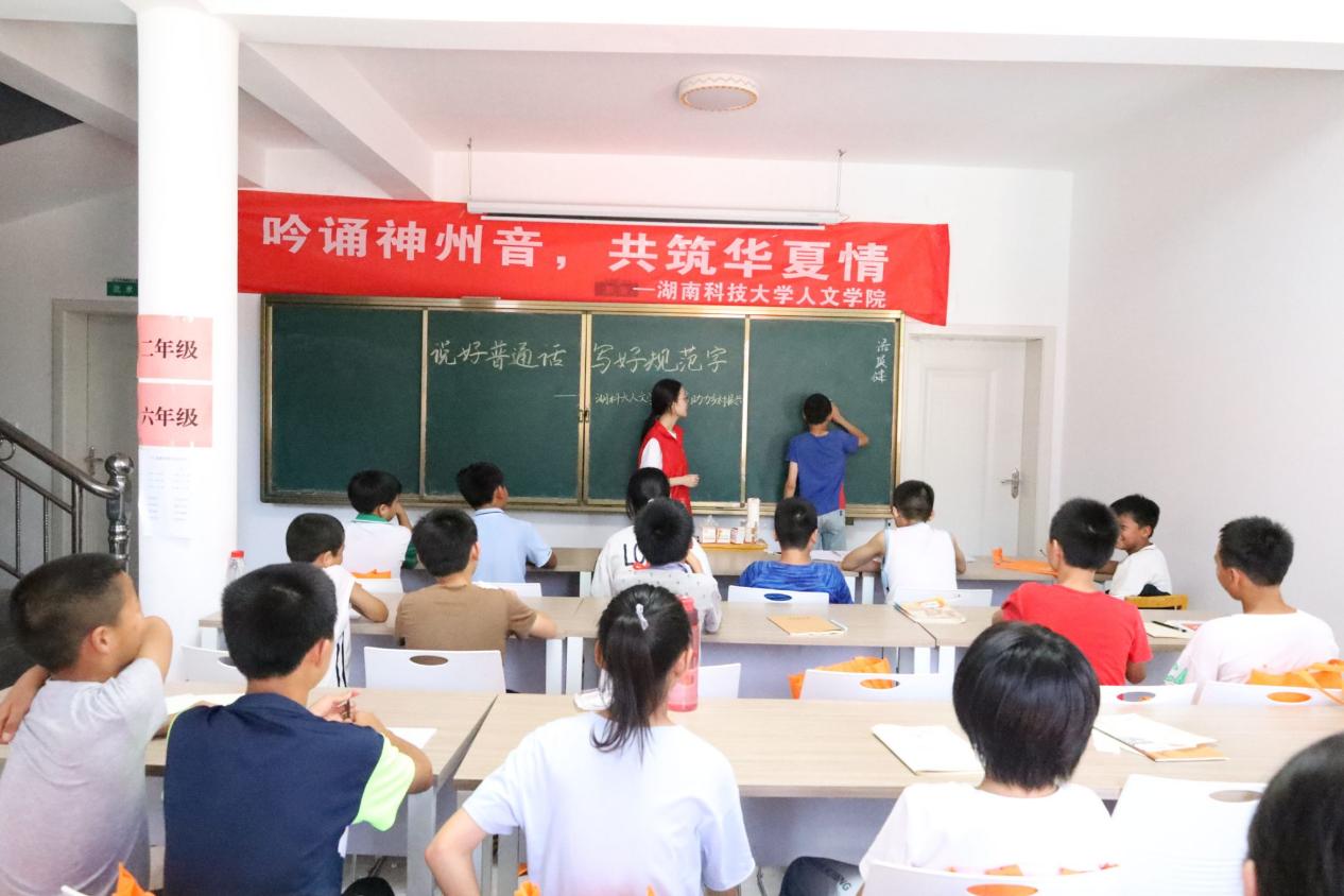 为深入贯彻习近平总书记关于教育的重要论述,加大农村地区国家通用语言文字的力度,践行志愿服务精神,发挥专业优势,助力乡村振兴。7月8日,世俱杯(Club WC)官方网站_世俱杯登录入口注册世俱杯(Club WC)官方网站_世俱杯登录入口注册暑期“三下乡”社会实践团队在株洲市攸县石羊塘镇高桥少儿假期学校开展主题为“吟诵神州音 共筑华夏情”的推普活动,为乡村振兴,贡献语言力量。