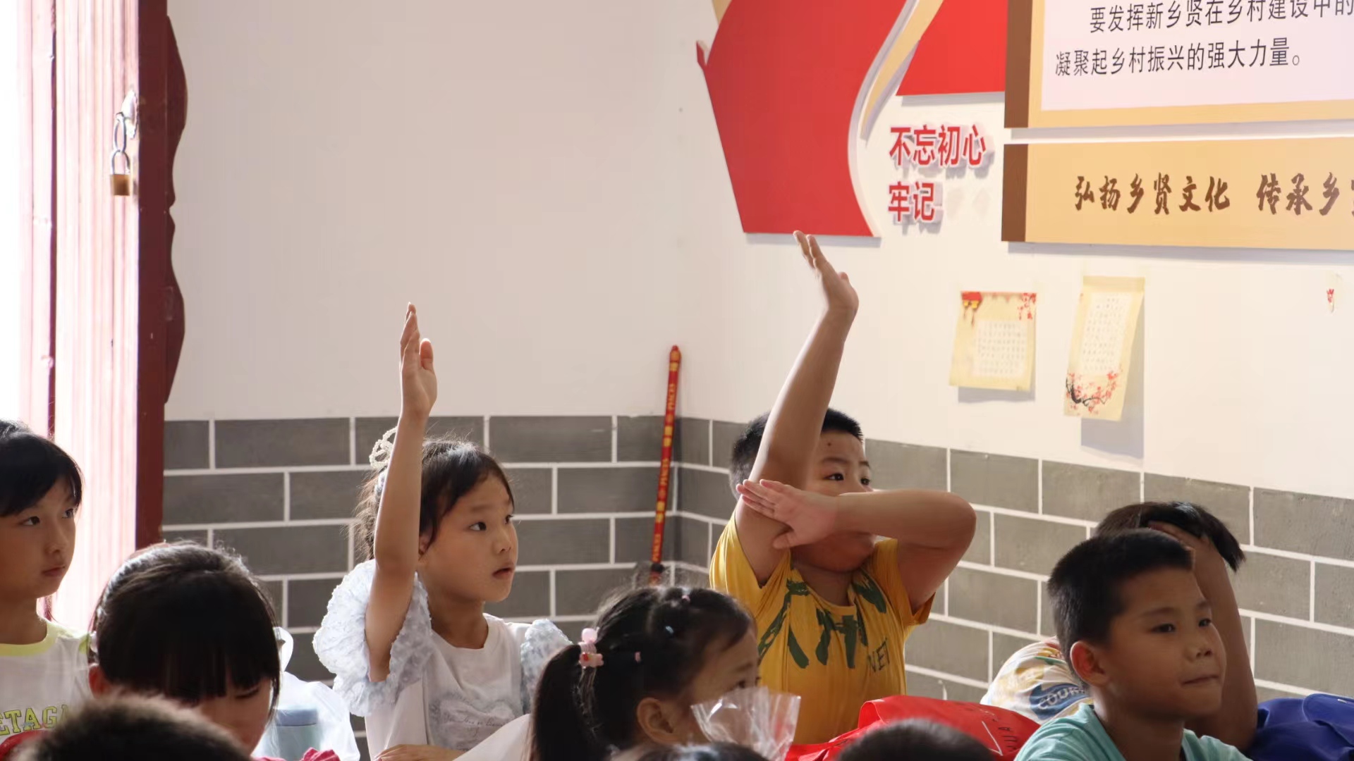 舞动青春漾童心,高歌梦想展翅飞。风雨棚里凉风习习,送来一片欢笑声。“左手左手比个yeah,右手左手开出花。”志愿者龙杨慧教一年级小朋友跳起了舞蹈,将音乐中青春力量带进课堂,舞动青春,让学生们在舞蹈中挥洒童心。随后,志愿者罗潇潇教孩子们唱《送别》和《歌唱祖国》,只见她一面清唱歌谣,一面示意学生们跟着她的旋律放声歌唱。