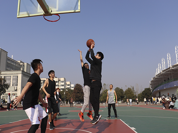 阳光明媚,激烈的比赛也正在开始。第一场,历史系的选手迅速的抢到球,开始便发起猛攻,队员默契的配合,一路传球、运球,冲进广告篮球架下。广告系也不甘示弱,快速回防,坚守阵地。球鞋在场上不停摩擦,只听“哐当”一声,19级历史彭黎明奋力一投,随着一阵欢呼,历史系拿下第一分。顺势而下,历史系以迅猛的攻势接连拿下六分,赛场下一片叫好,唤声不断。广告系经过单节休息时间的战略商讨,立即调整状态。16级广告专业靳江北在场内不停指挥,在队友紧密的配合下,利用各个方位进行走位传球,渐渐打出节奏来,比分也在步步接近,现场也进入了火热阶段。