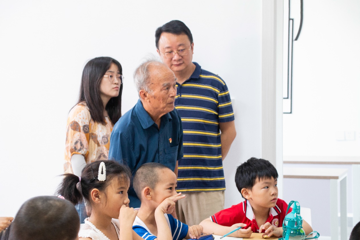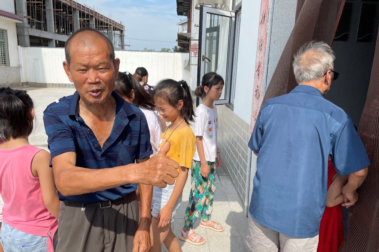 志愿者们积极热情的服务不仅让孩子们感受到学习的乐趣,同时也赢得了家长的信任。在教室外的凉亭中里,零星家长围坐闲谈。“今年暑假小孩没有去父母那,留在乡下,我就想着把他送到这学习。”徐塘斌的爷爷笑着说道。还在上幼儿园的汤丽荣“预定”了明年下半年的名额。汤丽荣的妈妈说,“今天带她来看看,了解一下情况,明年暑假再把她送到这里来上一年级。”