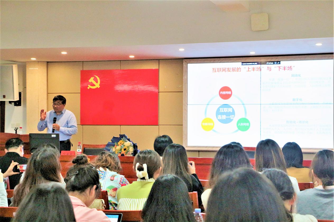 4月14日,教育部长江学者特聘教授、第七届国务院学位委员会新闻传播学学科评议组成员、北京师范大学新闻传播学院学术委员会主任、中国新闻史学会传媒经济与管理专业委员会理事长喻国明教授应邀来校,为广大师生作了“元宇宙、AIGC与传播革命”的学术讲座。讲座由世俱杯(Club WC)官方网站_世俱杯登录入口注册副院长袁星洁主持。