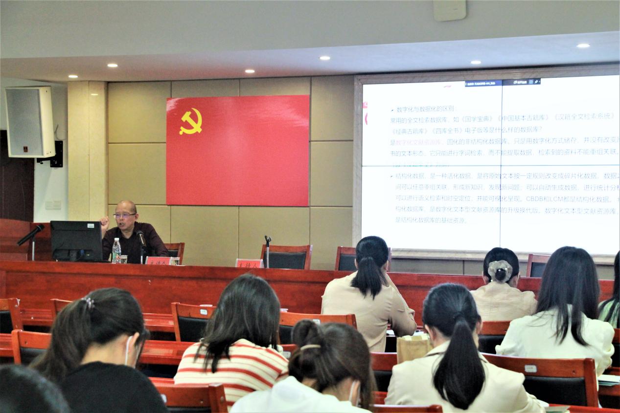 5月16日上午,我院于立言楼B4-1室举办湘江高端学术论坛暨“人文大家论坛”系列学术讲座247讲。四川大学文科讲席教授王兆鹏应邀来我院作主题为“数字人文的进展与人工智能在文学研究中的应用前景”的学术讲座,我院教师代表及文学系本科生到场参与,本次讲座由王友胜教授主持。